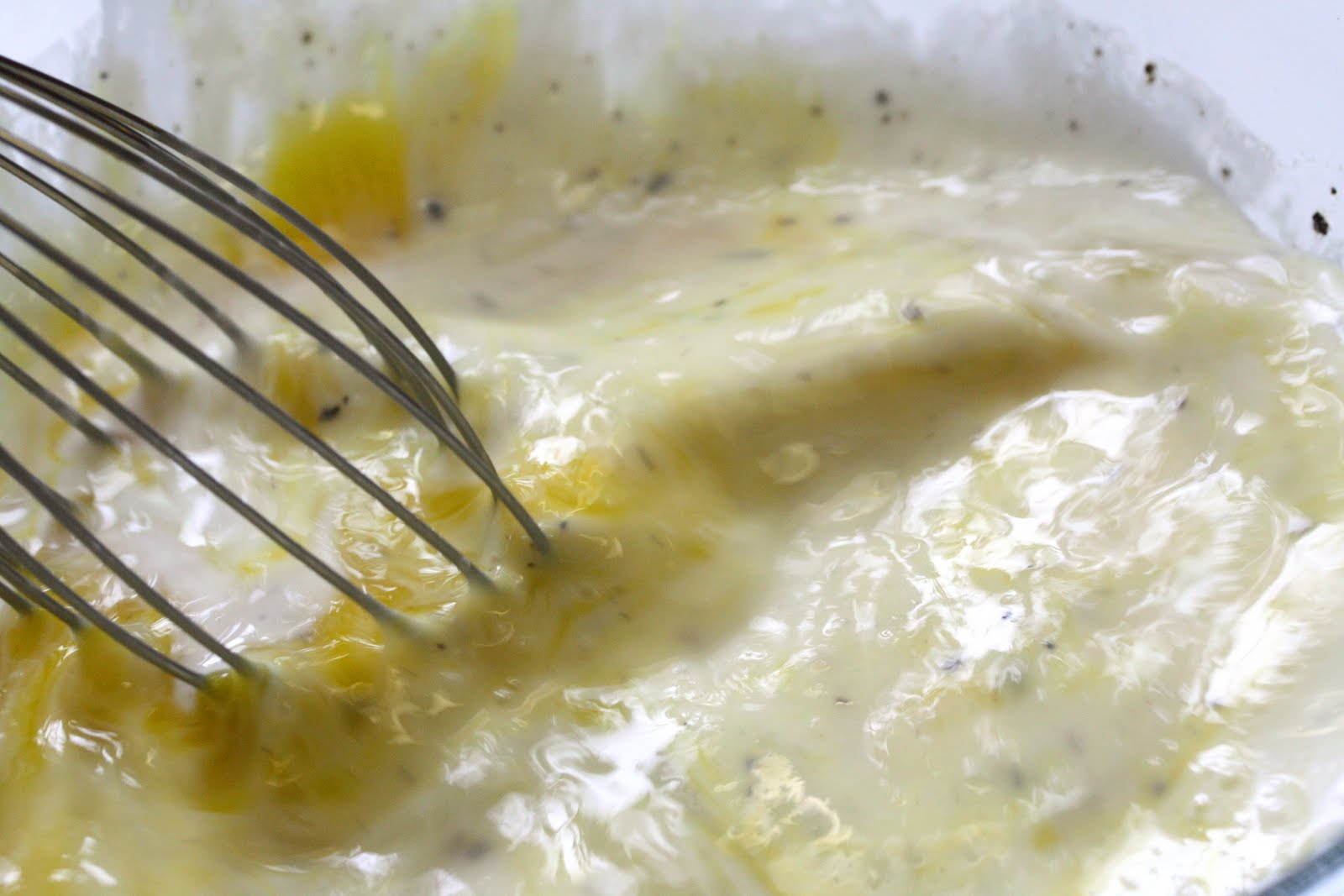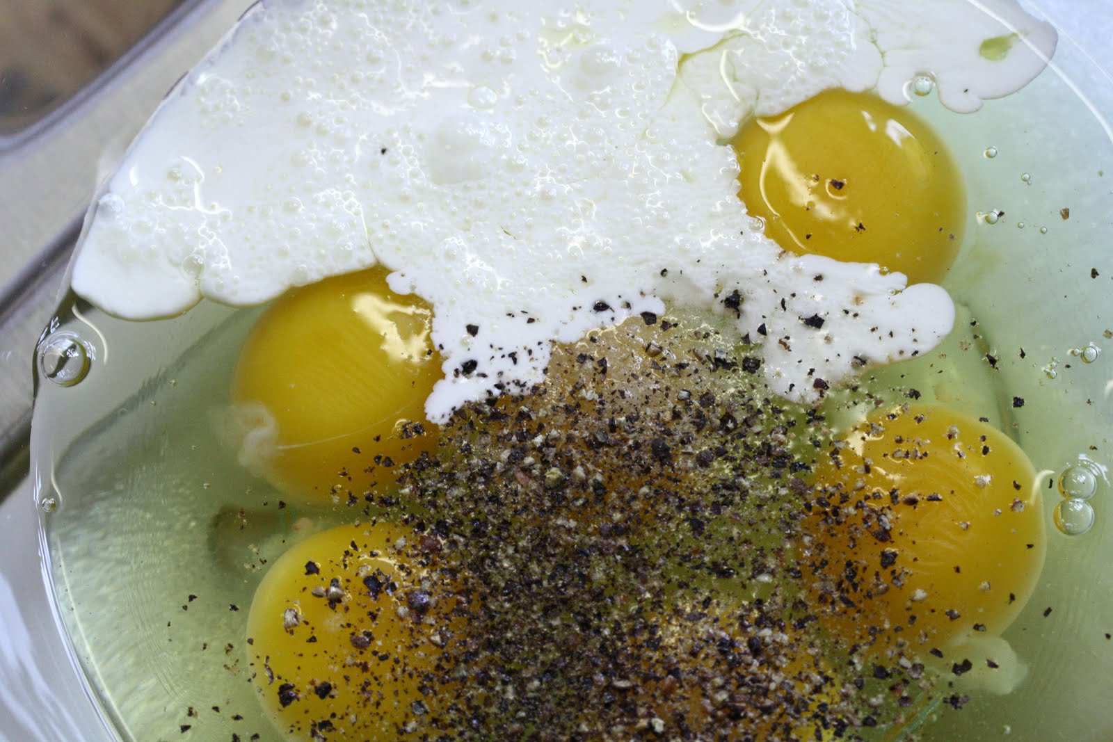 - In a medium bowl, whisk together the eggs, cream, ½ teaspoon salt and pepper. Set aside.