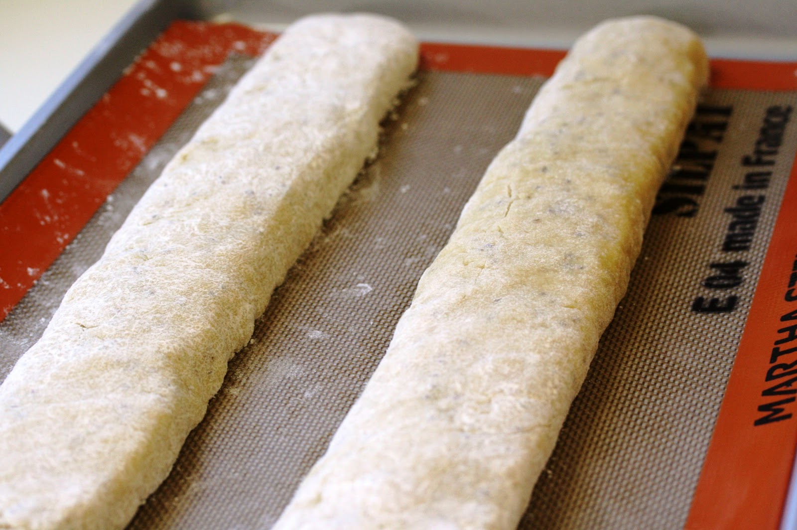 Cut the dough into 3 loaves 12 inches long by 2 inches wide.