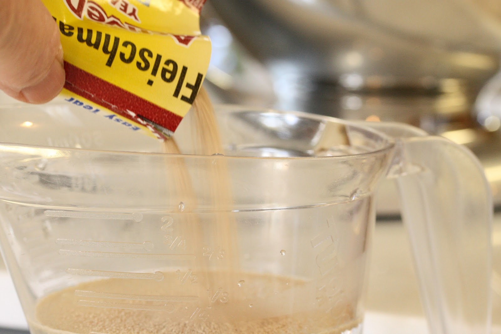 - Fit a stand mixer with a dough hook. Proof the yeast in the warm water mixed with 1 teaspoon sugar for 10 minutes or until foamy. Heat the milk in the microwave for 50 seconds on high. Set aside.