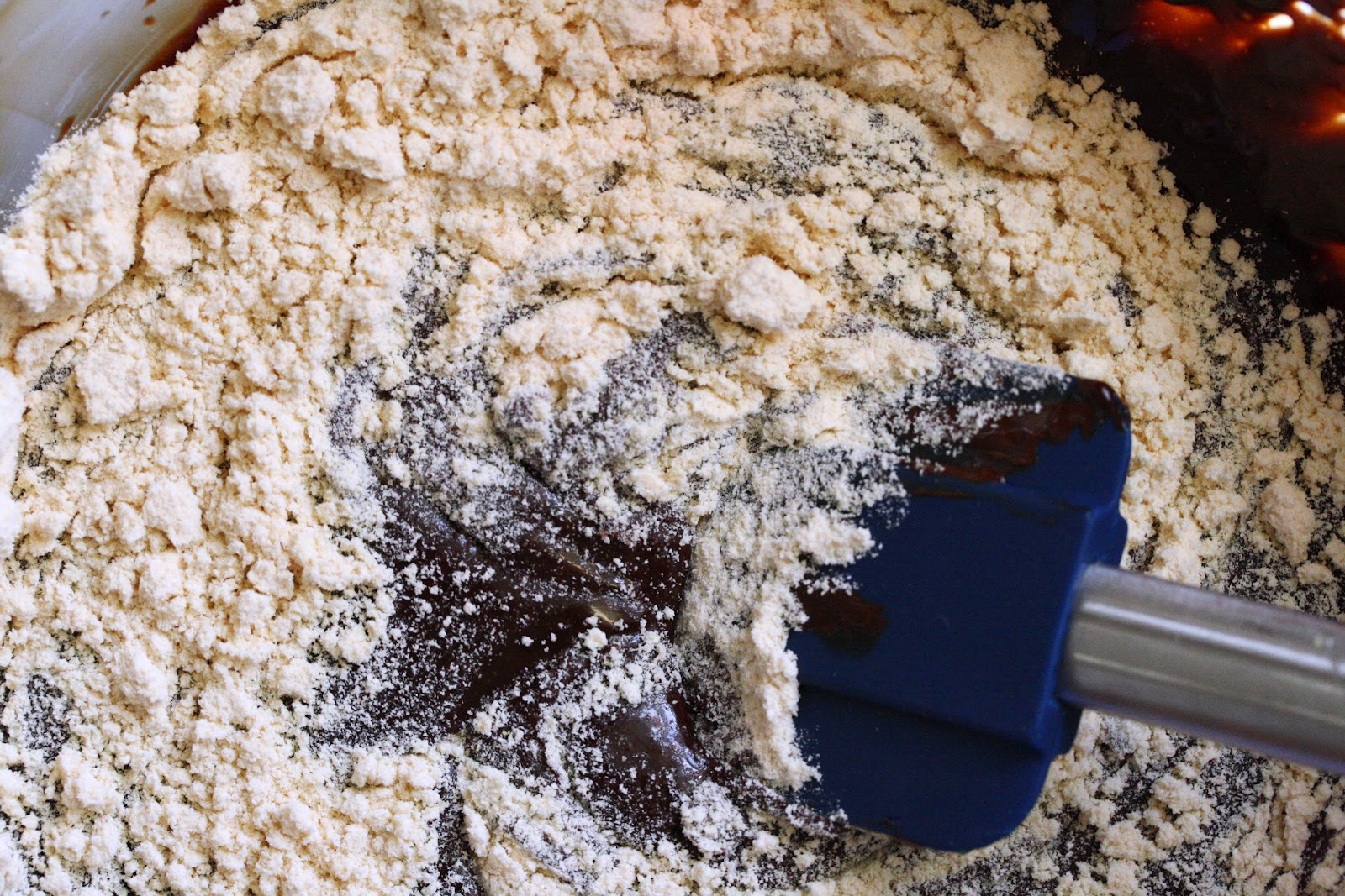 Slowly whisk the beaten egg and sugar mixture into the chocolate and butter. Continue whisking until all eggs are added and incorporated.