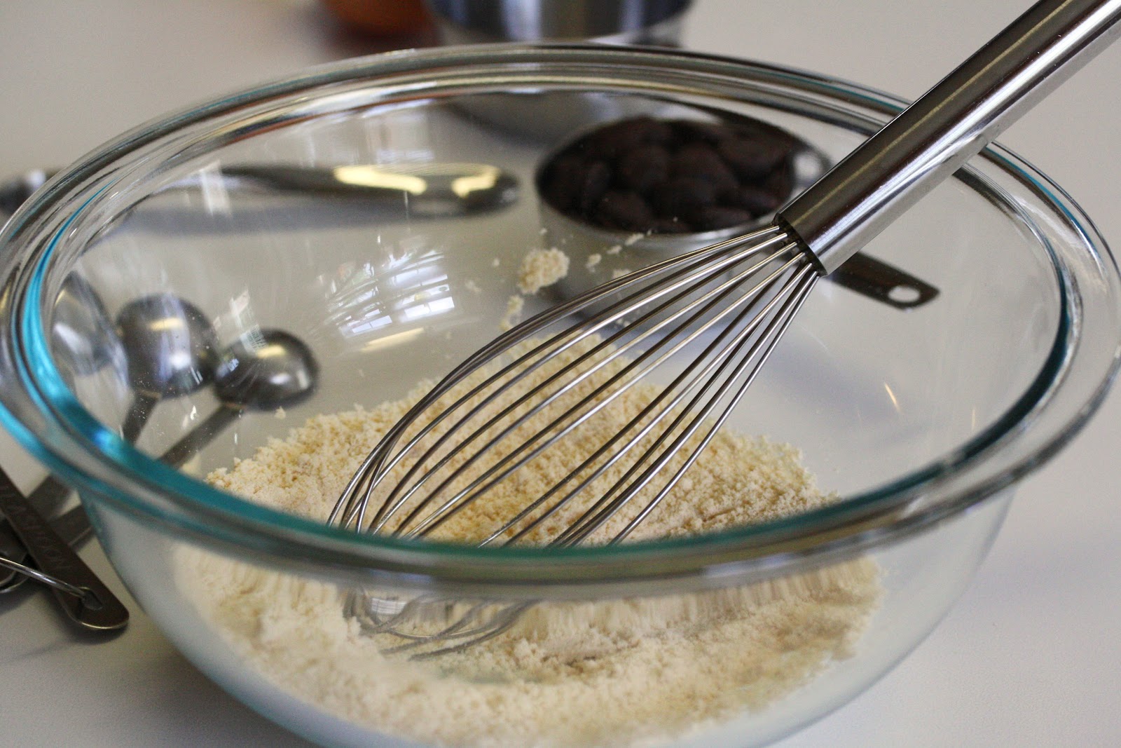 In a separate bowl combine the coconut flour, baking powder and salt. Whisk until blended.