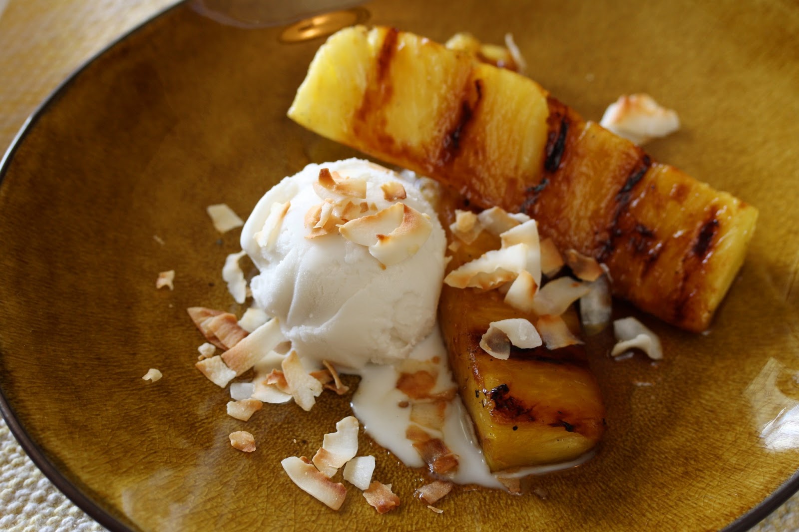 Coconut Sorbet with Rum Soaked Grilled Pineapple
