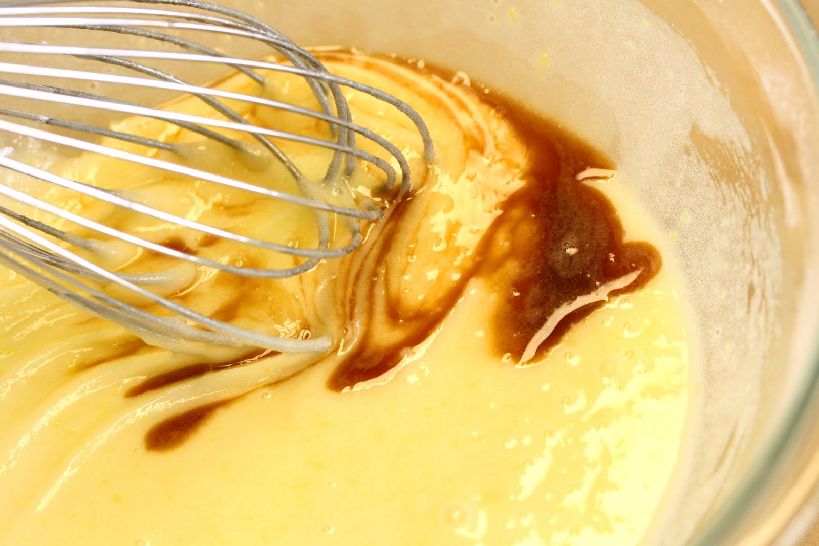 - Mix sugar, cornstarch and salt in a medium mixing bowl. Whisk in eggs, add vanilla, then gradually blend in chocolate mixture.
