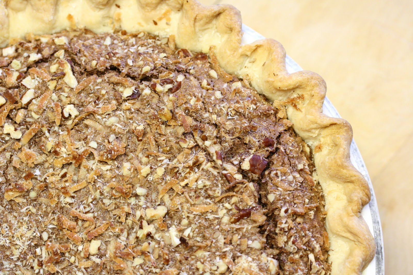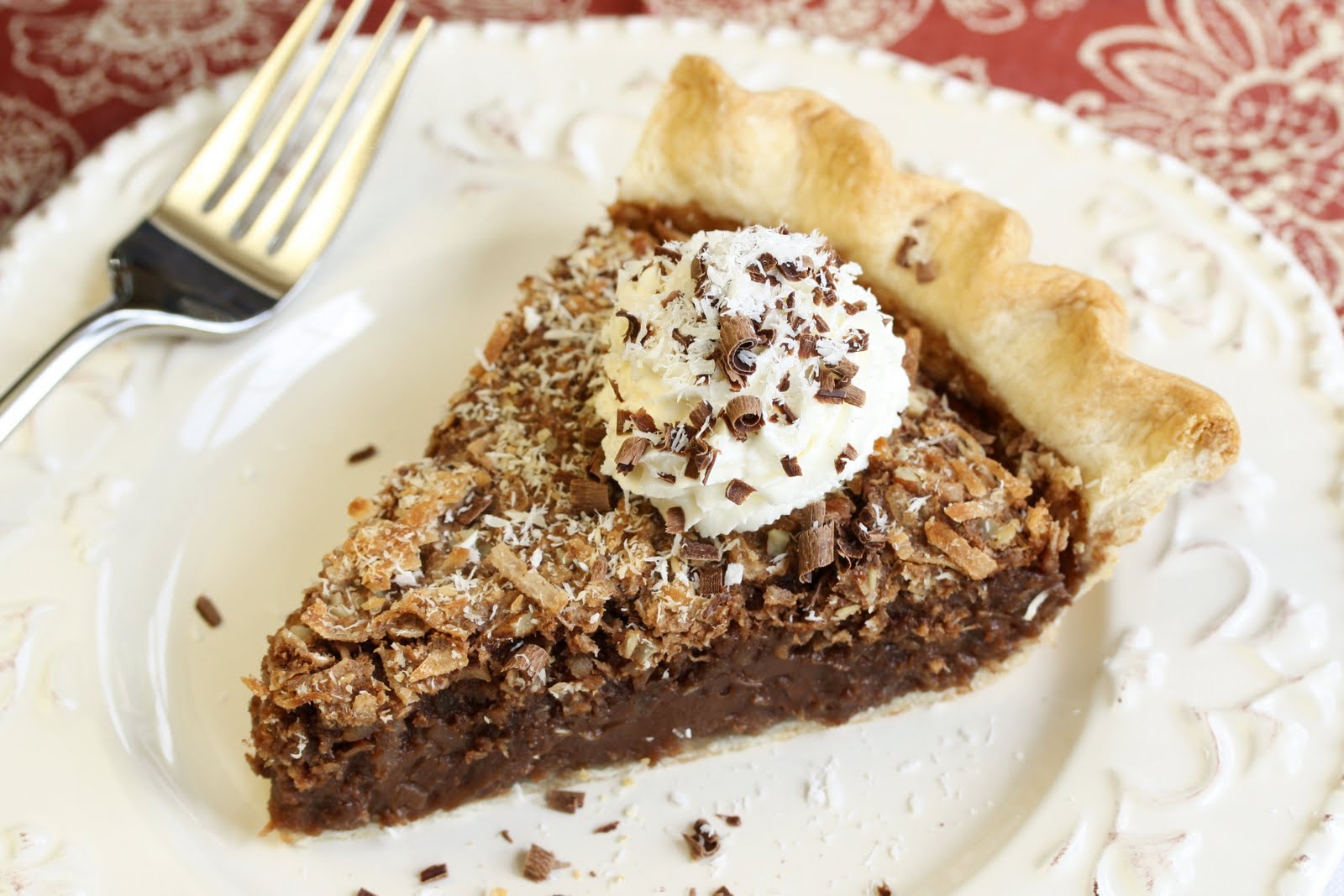 Do you like chocolate, and coconut, and pecans? If you answered yes, you will love this rich, creamy, nutty delicious pie. Being a chocolate lover myself, I am here to tell you this is up there as one of my favorites so far this year. It’s great!