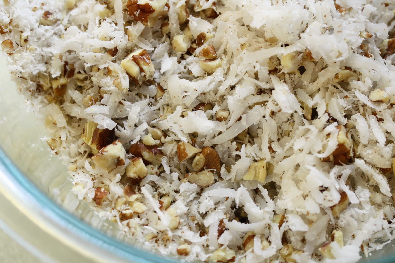 - Pour filling into an unbaked pie shell. In a small bowl combine the coconut and chopped pecans. Sprinkle over filling and press down slightly to set. Bake at 375°F for 45-50 minutes or until filling is puffed and lightly browned. The filling will be soft but sets while cooling.