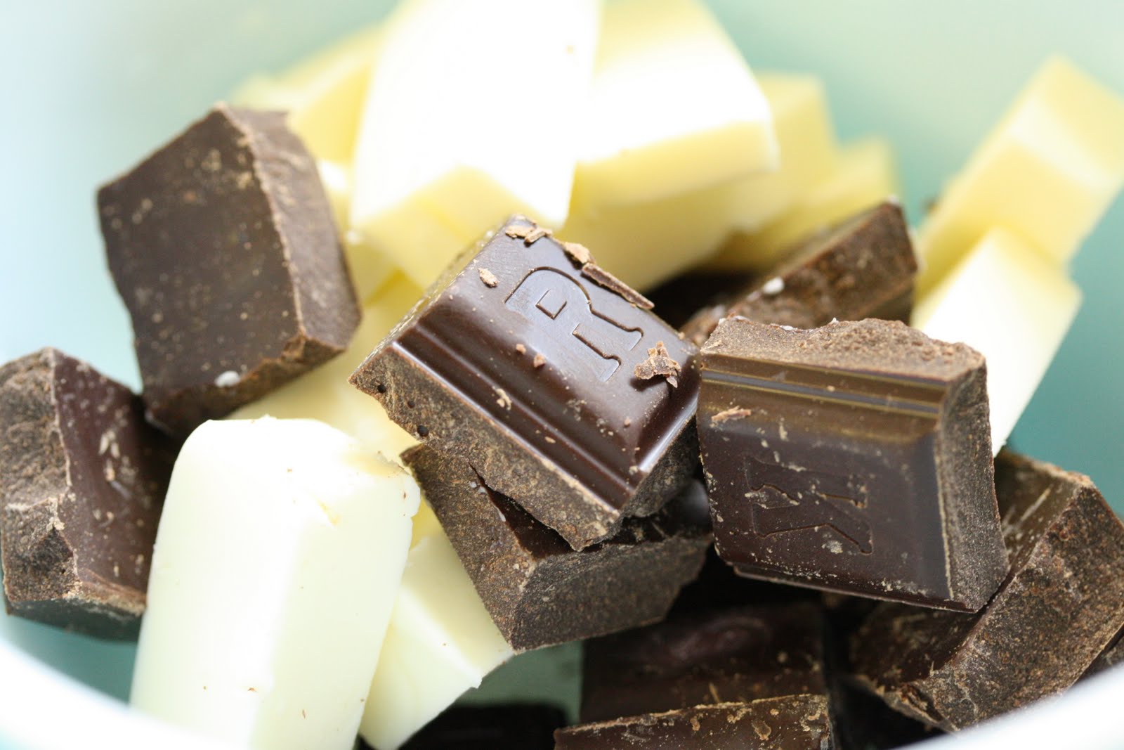 - Preheat oven to 375°F. Break chocolate into pieces and place in a small mixing bowl. Add the butter and microwave at 50% power for 30 seconds. Stir to blend and repeat until chocolate is almost melted. Allow the mixture to sit for a few minutes or until chocolate is completely melted. Do not over cook. Once melted, gradually blend in evaporated milk. Set aside.