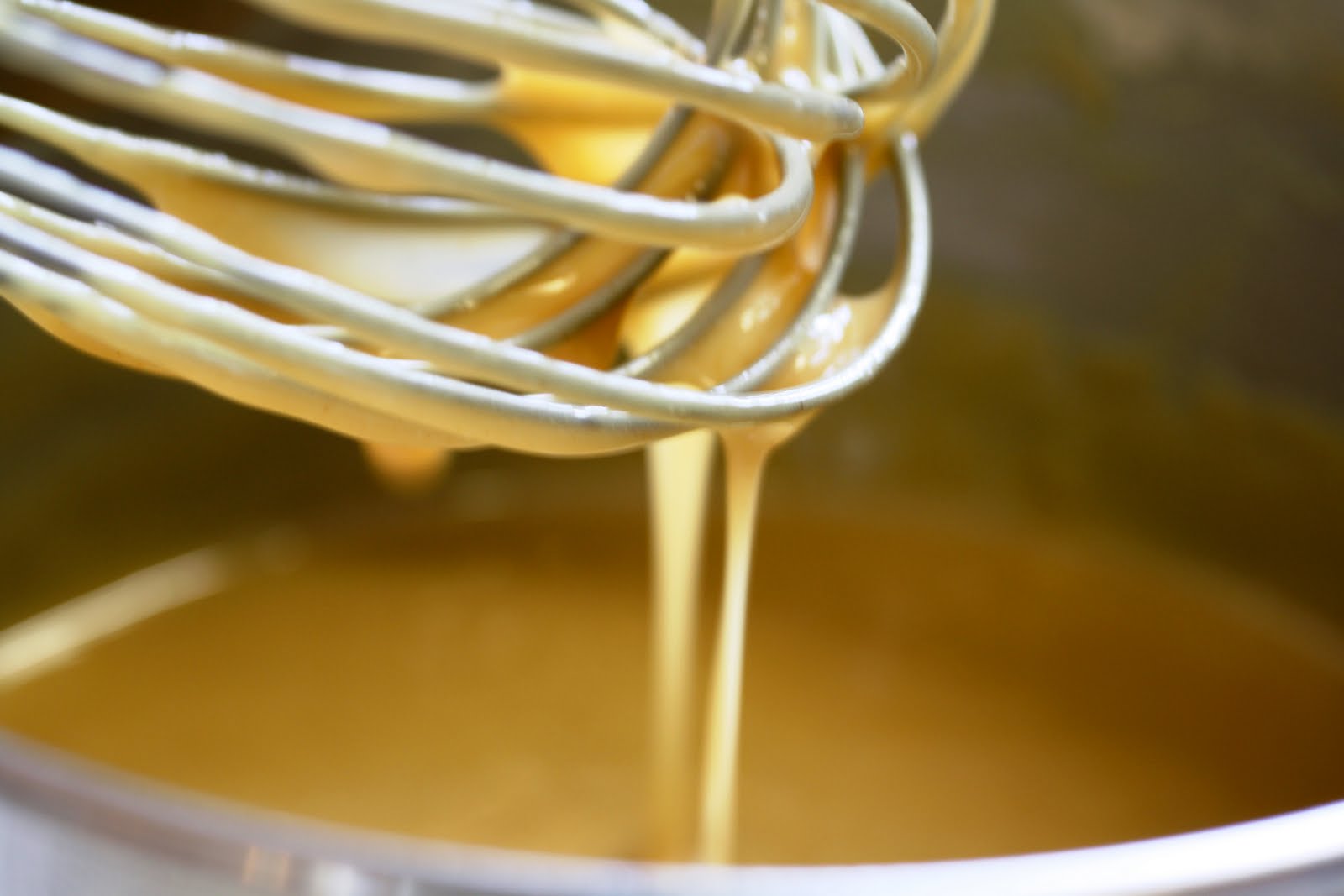 - Combine all ingredients except vanilla in a heavy saucepan. Cook over medium heat stirring constantly. Be sure to cover all parts of the bottom of the pan with the wire whisk to prevent scorching. Stir until mixture comes to a boil. Reduce heat to low and cook, stirring constantly, until mixture reaches 244°F on a candy thermometer or firm ball stage. Remove from heat and whisk in vanilla. Pour into a glass container and cool for later use.