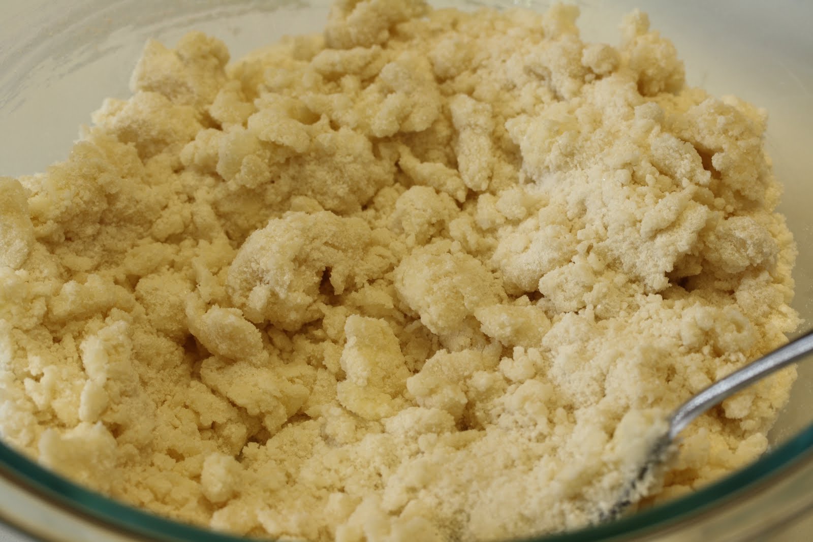 - To make the crumb topping mix all ingredients together by hand or with a pastry blender until fine and crumbly.