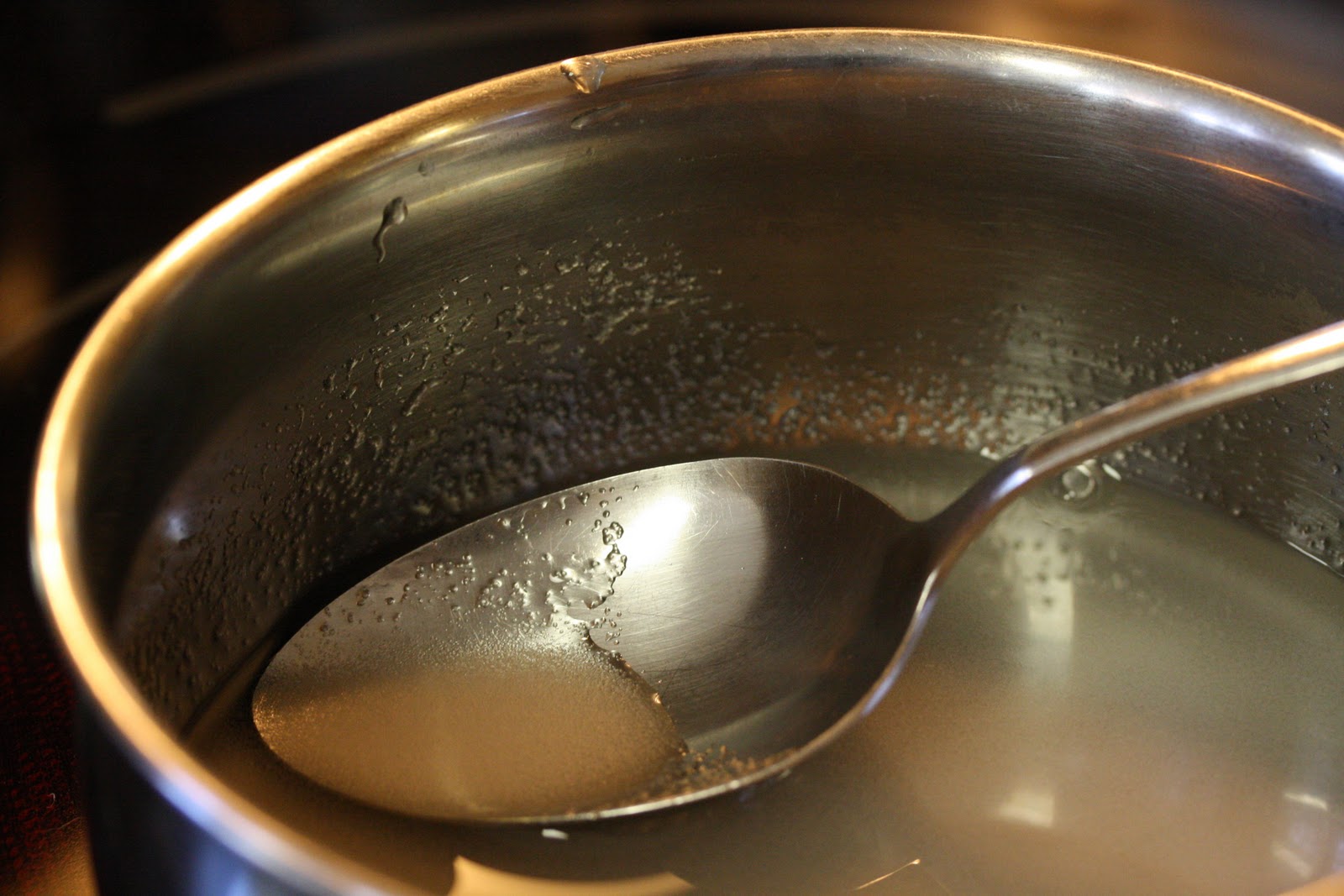 Start by making a simple syrup with sugar and water.ย Bring the mixture to a boil and cook until it starts to thicken and all the sugar is dissolved.