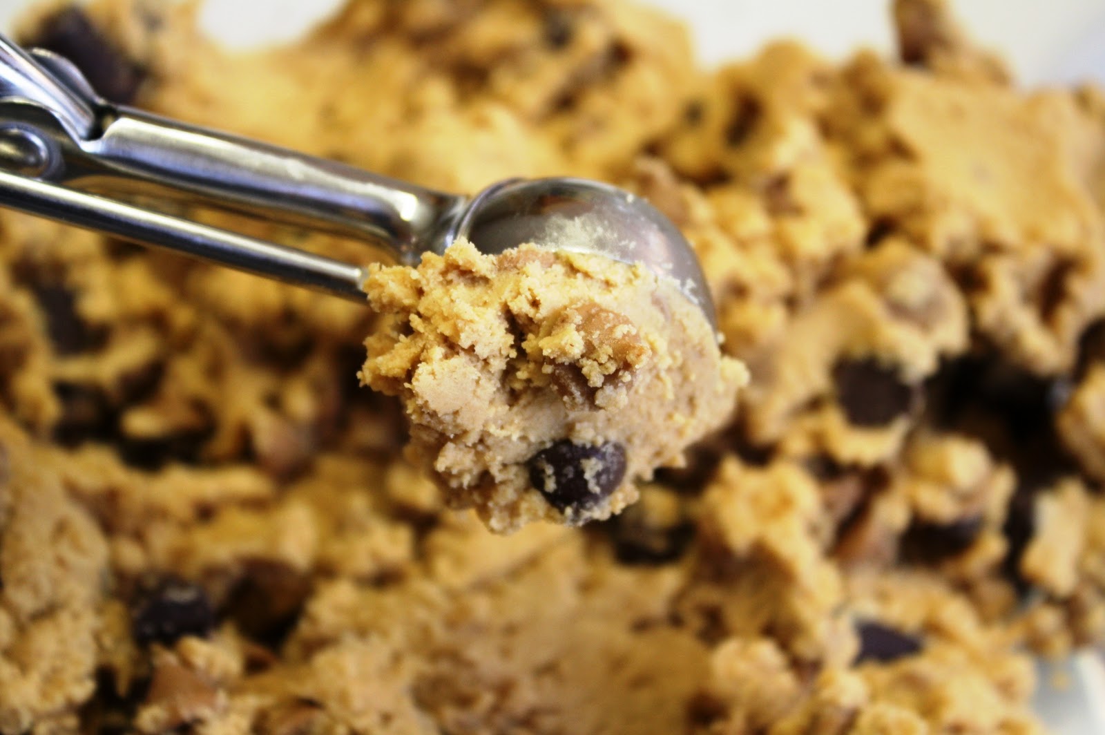 Preheat oven to 350 degrees.ย Scoop dough with a mini ice cream scoop and place balls on a cookie sheet.