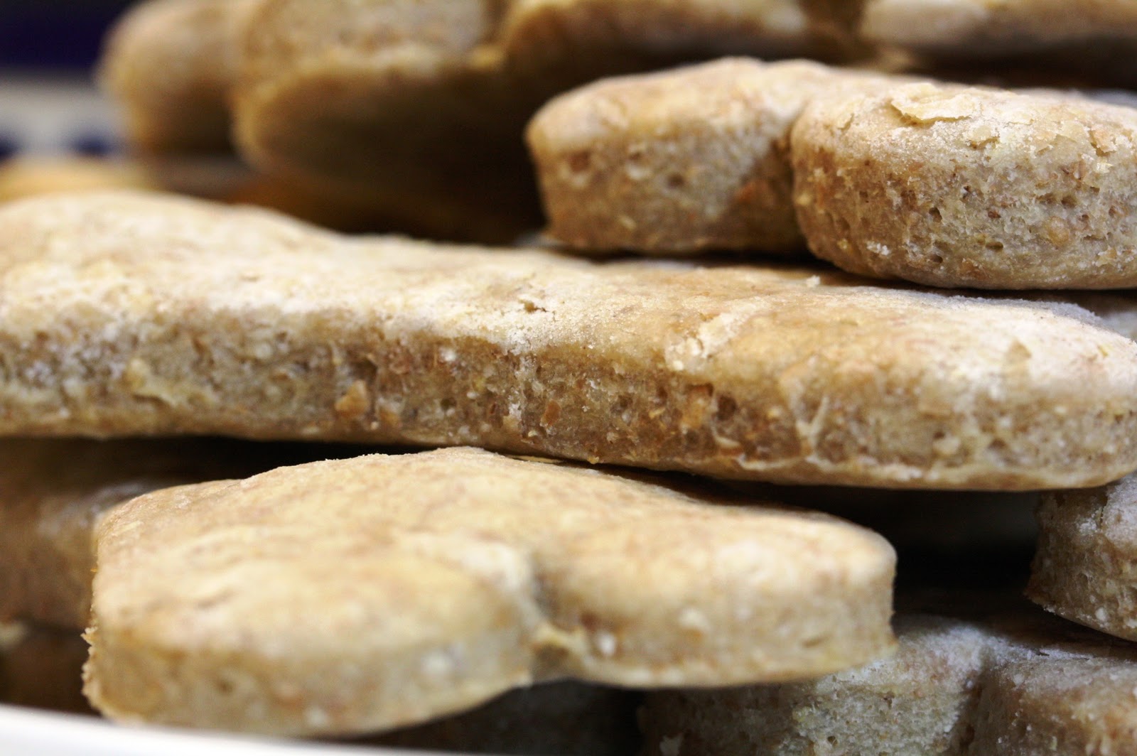 Iย am so excited about this recipe!ย I’ve searched, researched, investigated, and perused various publications all in an effort to find the perfect dog treat!ย I think I’ve mentioned before that we have three dogsย at our house.ย ย Husband and I actuallyย onlyย own one dog, but seem to be the adopted grandparents of the other two.ย Grandparents, especially grandmothers, are responsible for fun and games, and of course … treats and snacks!