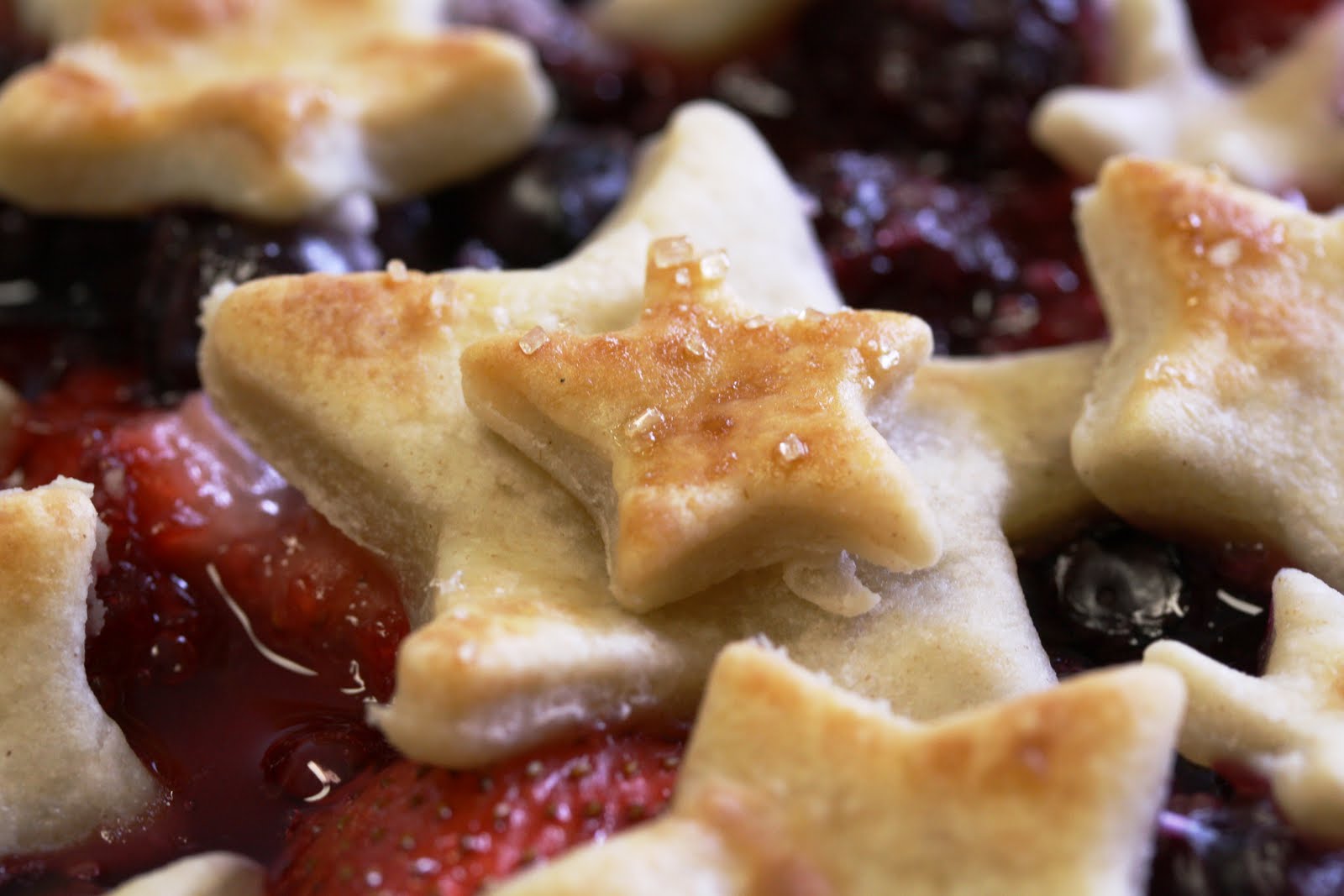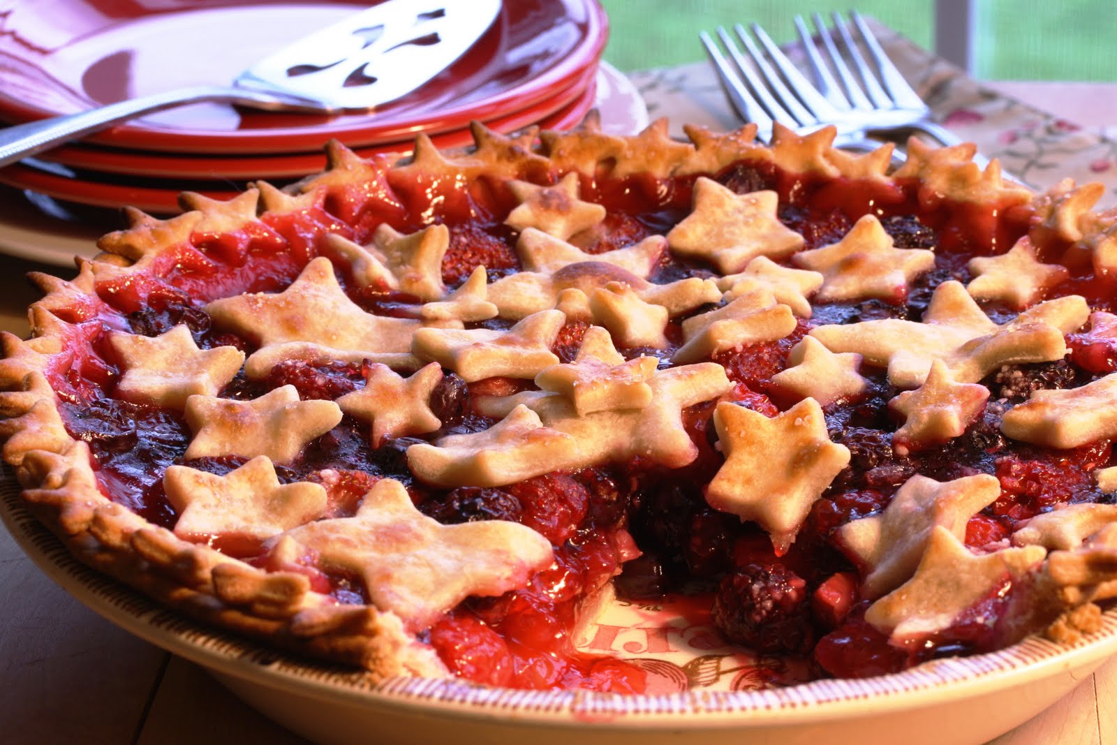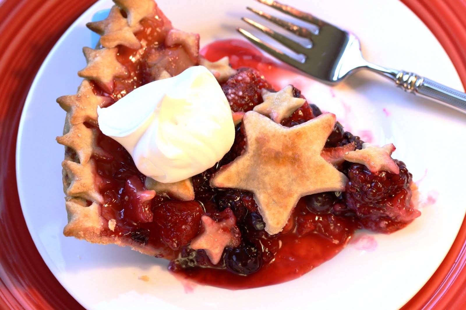 With Memorial Day and Fourth of July coming up, I thought a patriotic pie would be fun. Make a double Pasty shell and cover the top with a lattice design or use a star cookie cutter and place them on top of the berries.