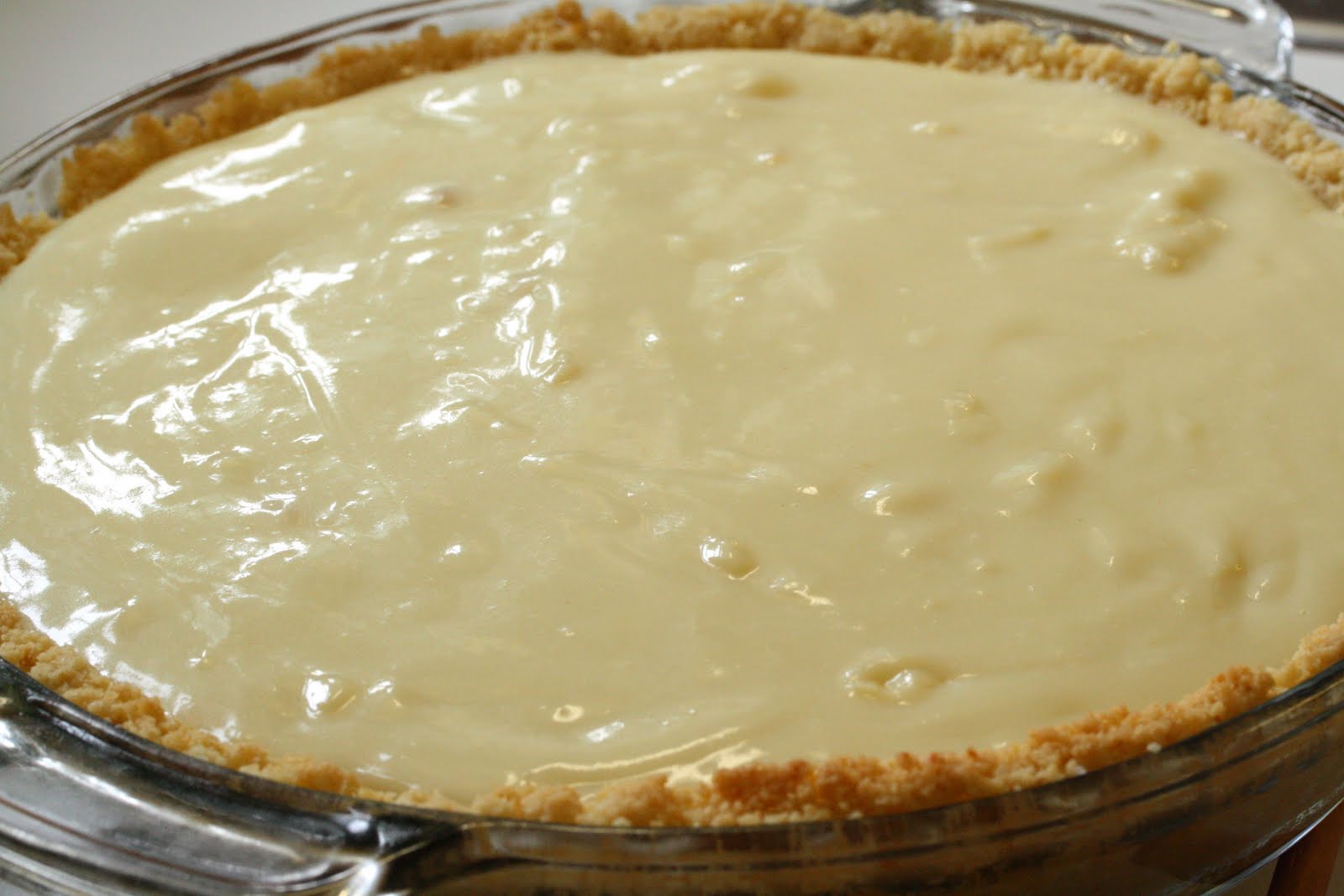 Once cooled down (not steaming) spread a small amount of custard in the bottom of the baked crust.