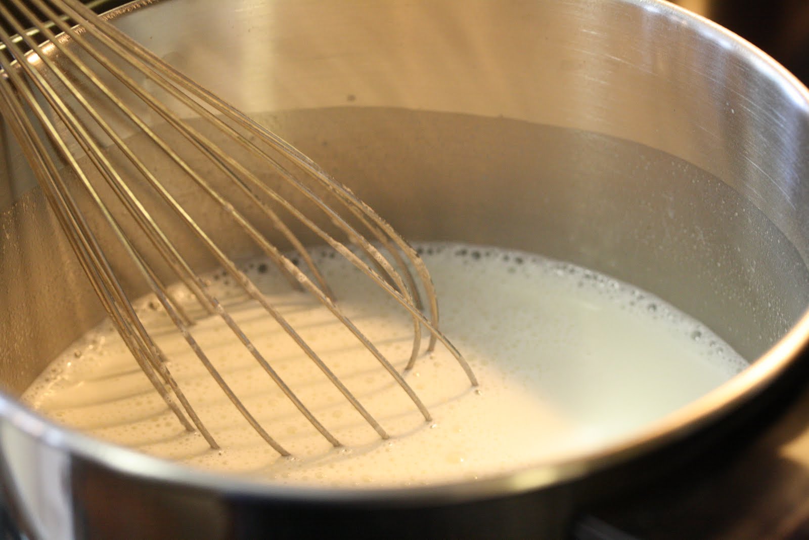 Blend until the egg mixture and the milk mixture are incorporated. Return to the stove and bring to a boil. Boil 1 more minute stirring constantly.