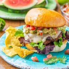 Serve the burgers on a toasted bun with lettuce, smashed avocado and fresh pico de gallo.