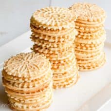 Bake the Pizzelles according to the manufactures directions. Store in an airtight container.