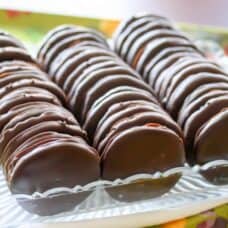 Dip a completely cooled cookie in the chocolate coating both sides. Using a large serving or meat fork, hold the chocolate covered cookie over the melted chocolate tapping gently to remove the excess. Slide the Thin Mint onto wax paper. Cool until the chocolate is set and refrigerate or freeze until ready to serve!