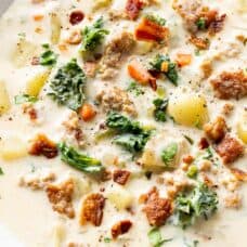 Add the half-and-half, kale, black pepper, crumbled sausage and chopped bacon. Cook gently, stirring occasionally, until the kale is softened and the soup is heated through. Check the seasoning and add salt and pepper if needed.